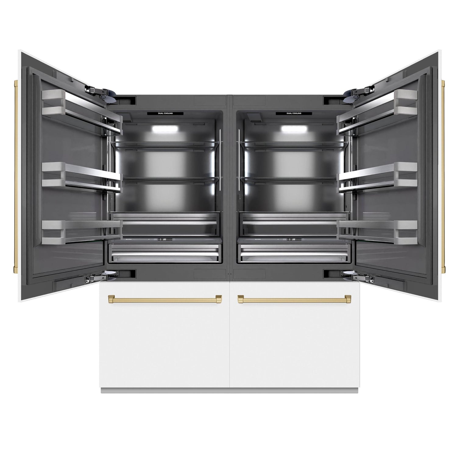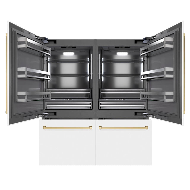 ZLINE Autograph Edition 72 in. 39.6 cu. ft. French Door Built-In Bottom Freezer Refrigerator with Water Dispensers and Ice Makers in White Matte with Graphite Gray Interior and Champagne Bronze Accents (GRBITZ-WM-72-CB)