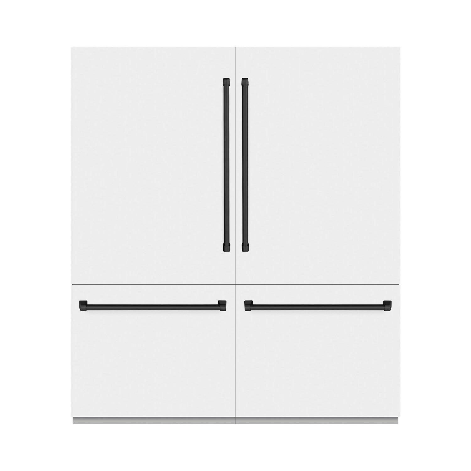 ZLINE Autograph Edition 72 in. 39.6 cu. ft. French Door Built-In Bottom Freezer Refrigerator with Water Dispensers and Ice Makers in White Matte with Graphite Gray Interior and Matte Black Accents (GRBITZ-WM-72-MB)