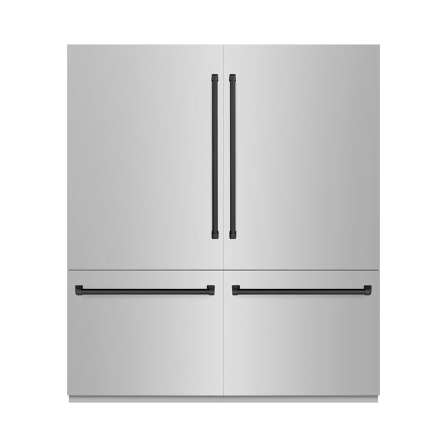 ZLINE Autograph Edition 72 in. 39.6 cu. ft. French Door Built-In Bottom Freezer Refrigerator with Water Dispensers and Ice Makers in Stainless Steel with Matte Black Accents (RBITZ-304-72MB)