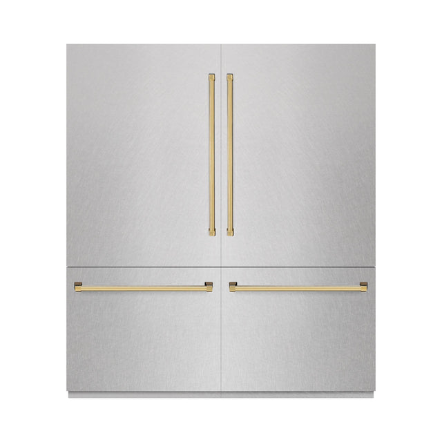 ZLINE Autograph Edition 72 in. 39.6 cu. ft. French Door Built-In Bottom Freezer Refrigerator with Water Dispensers and Ice Makers in DuraSnow' Stainless Steel and Polished Gold Accents (RBITZ-SN-72-G)