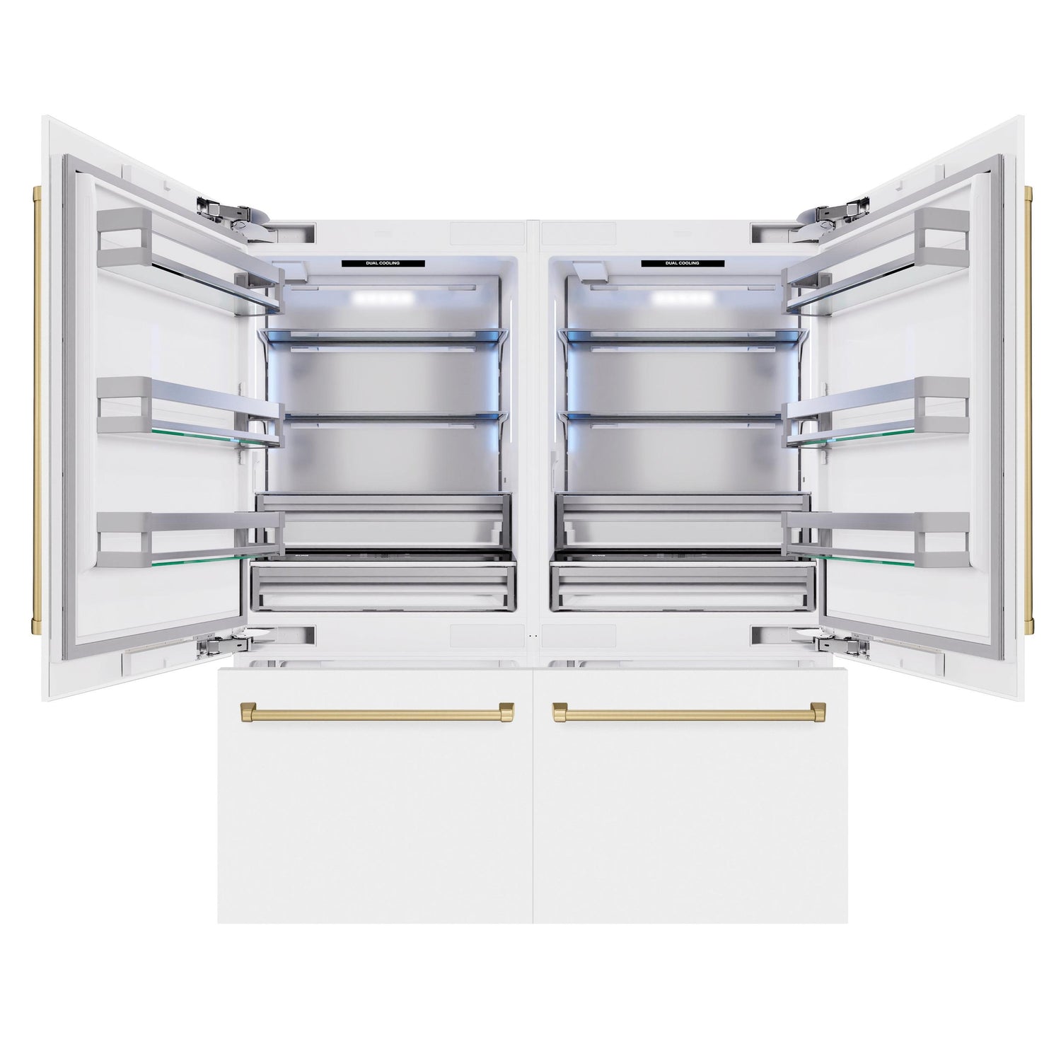 Model RBITZWM72CBZLINE Autograph Edition 72 in. 39.6 cu. ft. French Door Built-In Bottom Freezer Refrigerator with Water Dispensers and Ice Makers in White Matte and Champagne Bronze Accents (RBITZ-WM-72-CB)