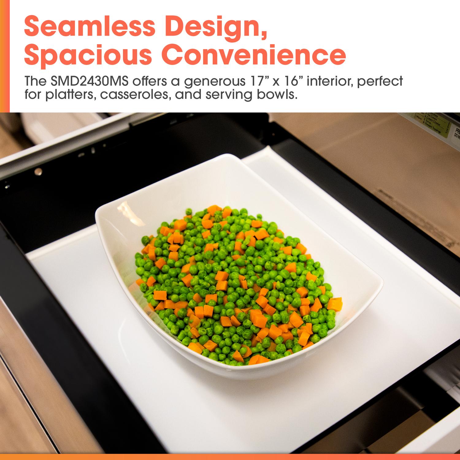 The Sharp (R) SMD2430MS Microwave Drawer TM Oven has been designed to complement the widest range of kitchen styles and appliances. The sleek, low-profile design and stainless-steel finish beautifully complement any kitchen.