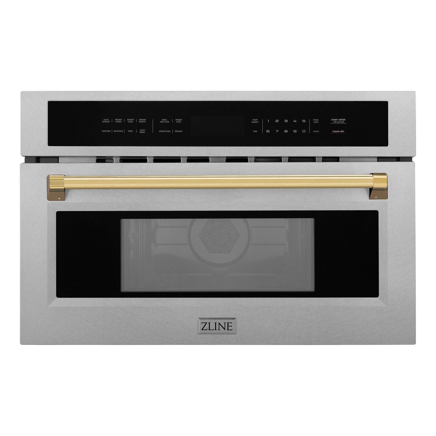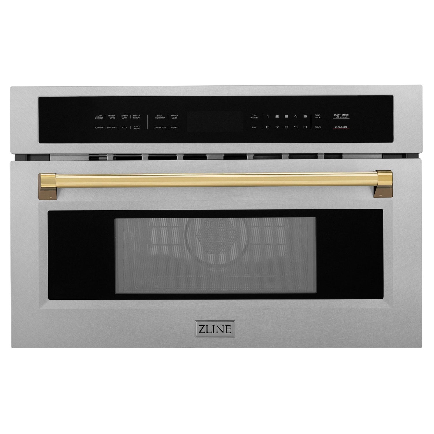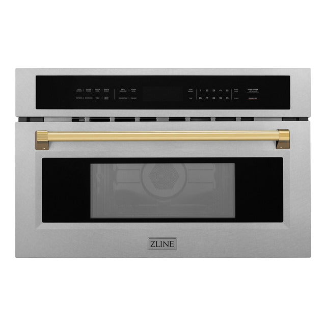 ZLINE 30" Autograph Microwave Oven in DuraSnow Stainless with Polished Gold Accents (MWOZ-30-SS-G)