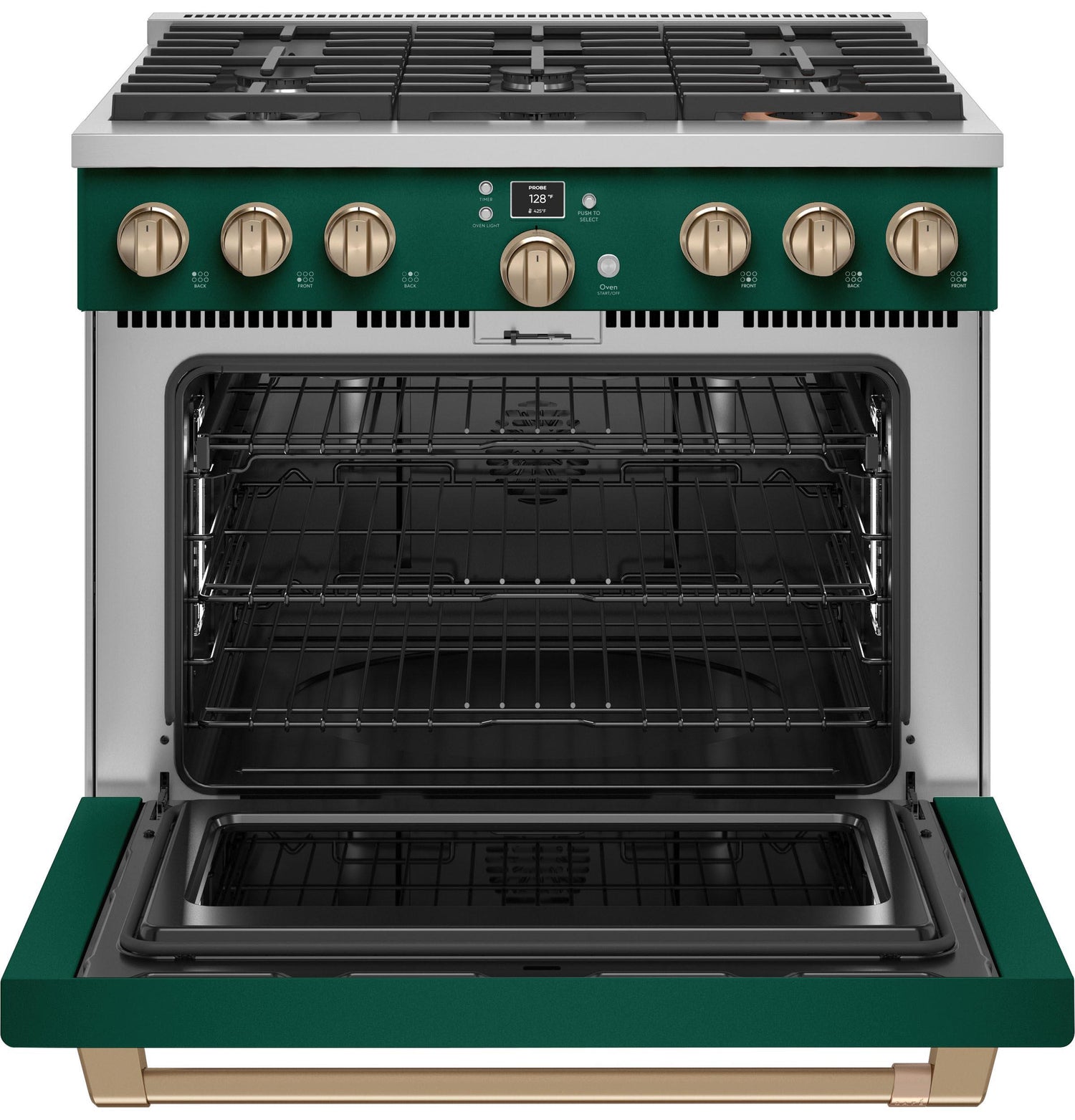 - Get a coordinated look with a manifold that matches the range's finish and an LCD control panel that provides information like oven and probe temperatures and cooking time for perfect cooking results