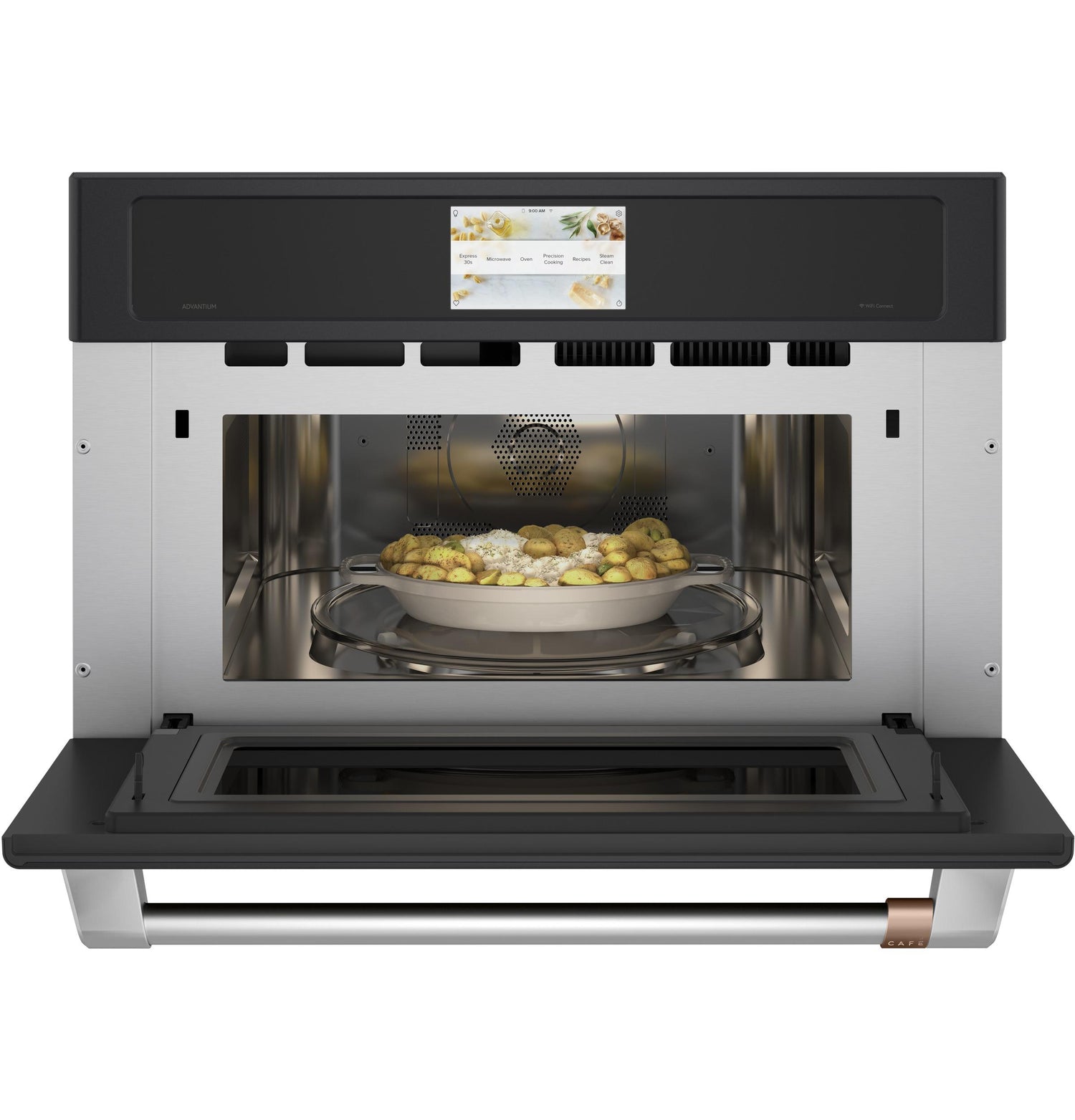 - When you're updating your kitchen, attention to detail is a priority. That's why Café Advantium wall ovens are guaranteed for an exact fit for an easy and seamless replacement.