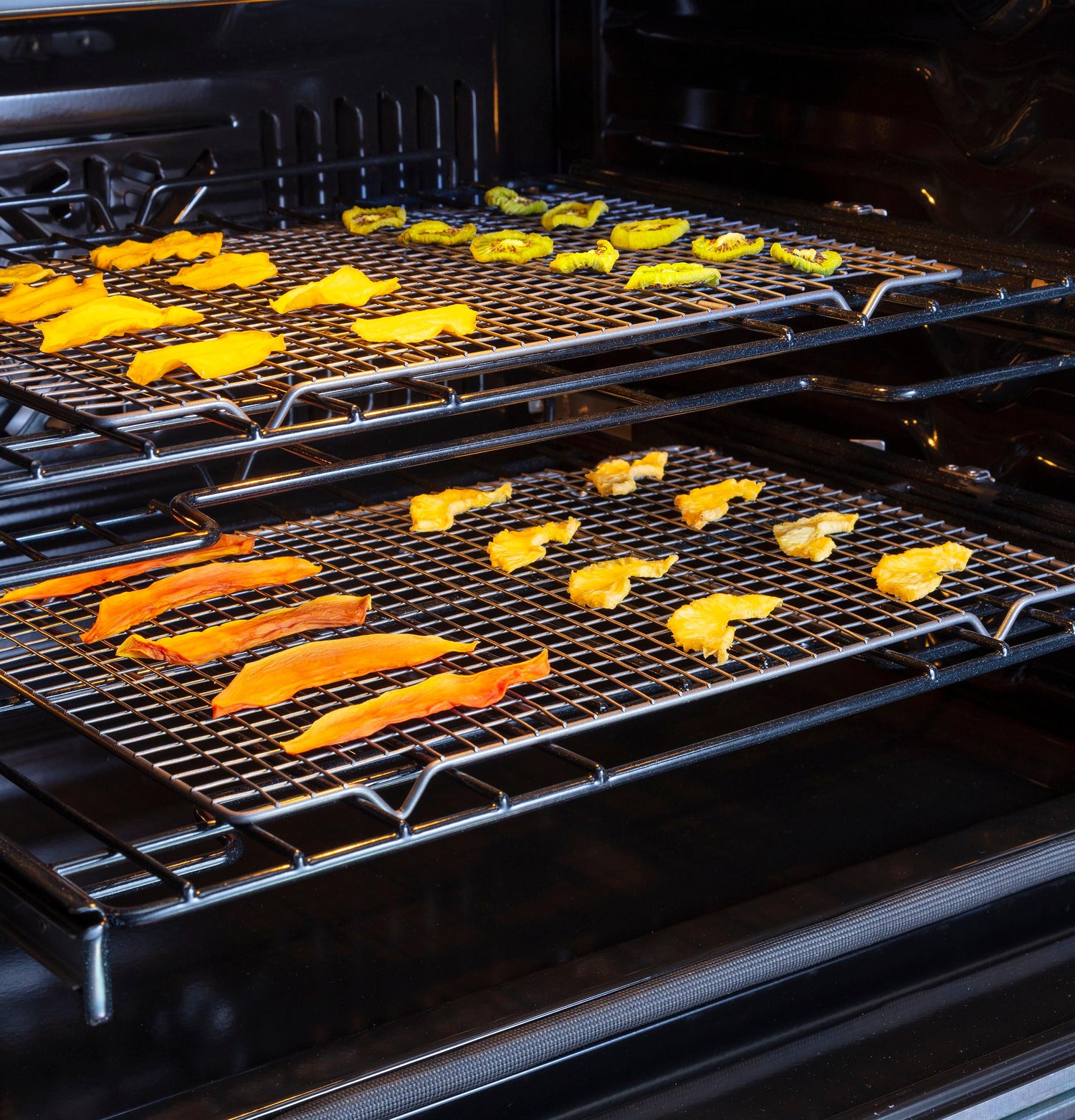 - Make homemade chips, spices and dehydrated fruits more easily than ever with a moisture-removing setting in your oven