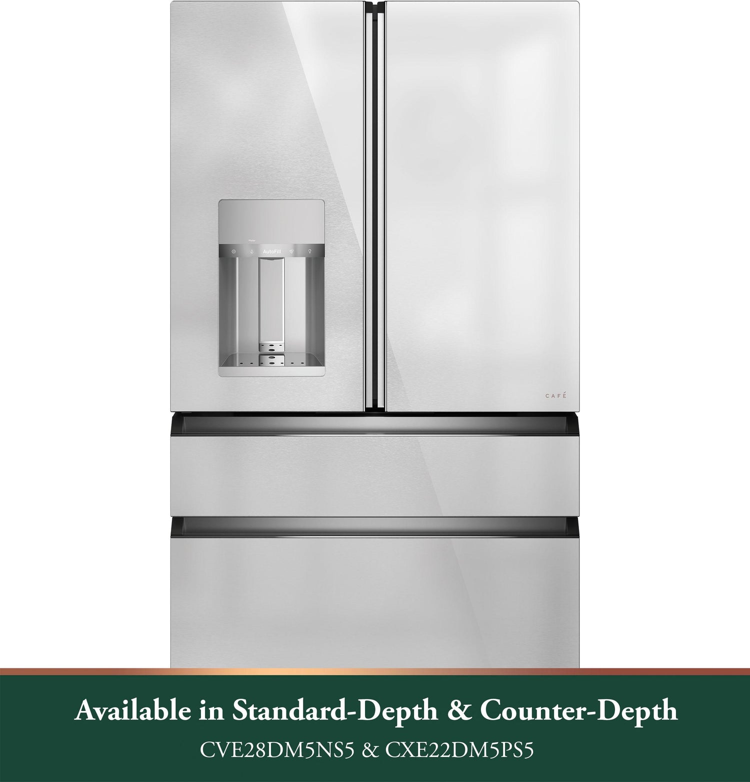 Model CXE22DM5PS5Café™ ENERGY STAR® 22.3 Cu. Ft. Smart Counter-Depth 4-Door French-Door Refrigerator in Platinum Glass