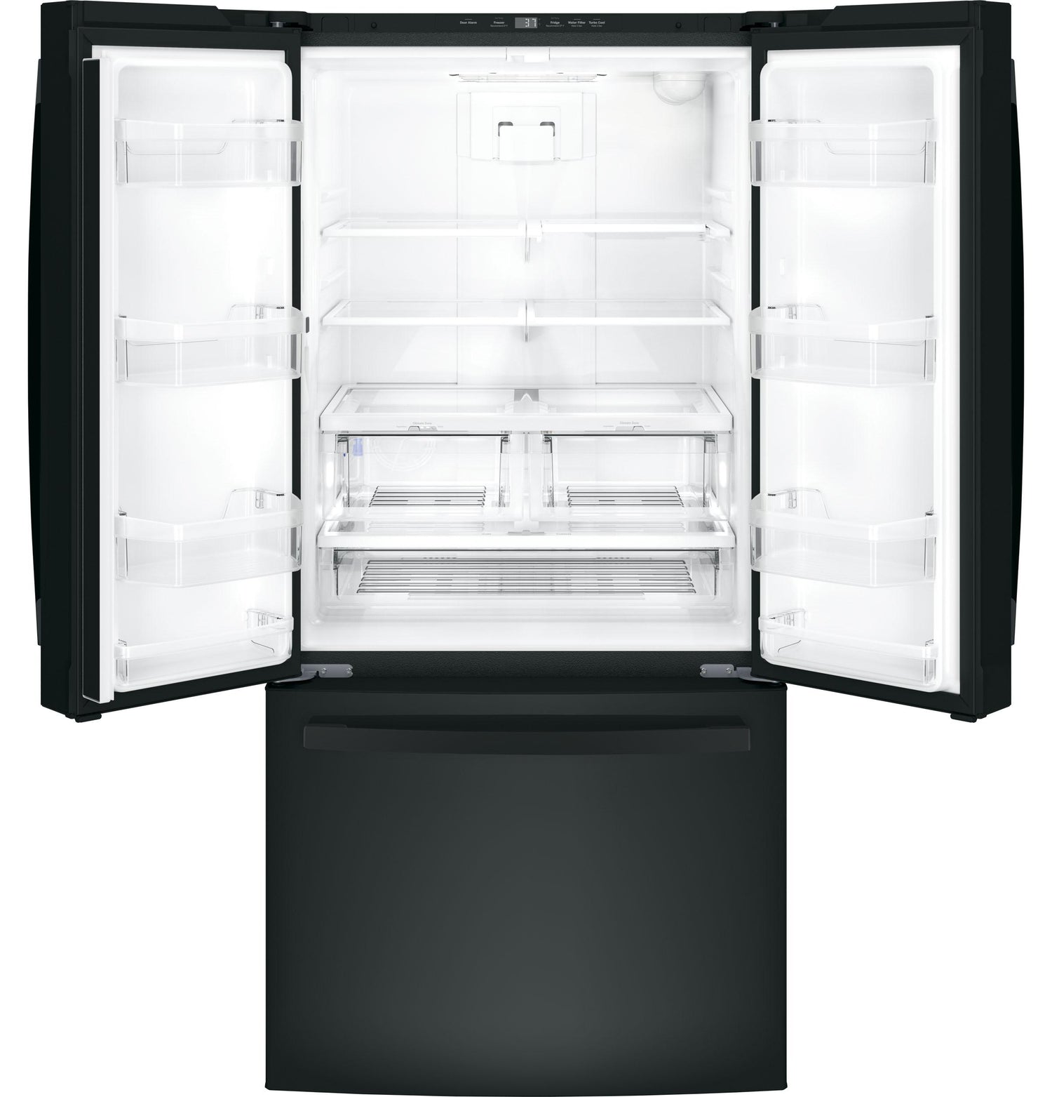 - Deep bins handle large containers in the door and free up valuable shelf space