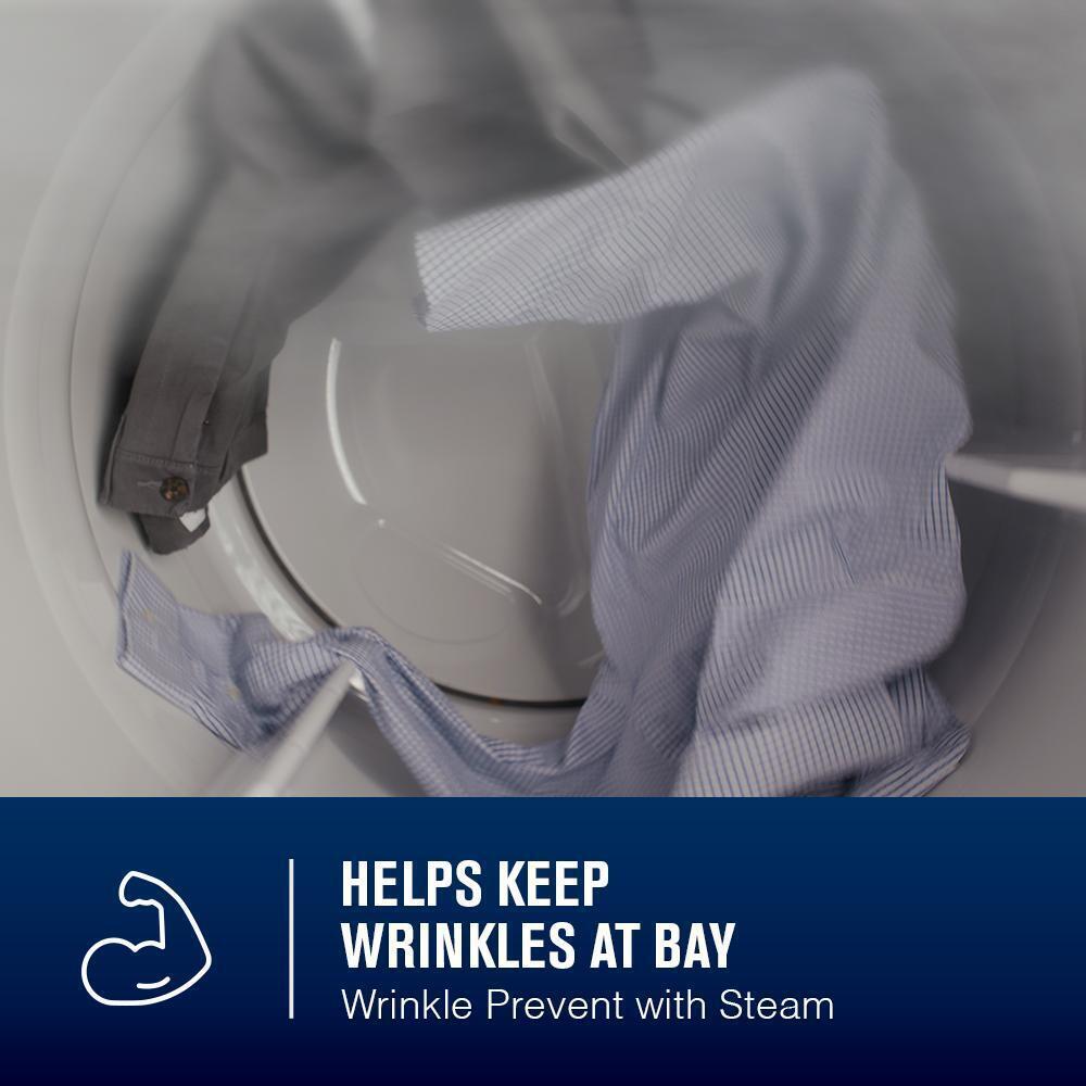 • With the Wrinkle Prevent option with Steam, the dryer tumbles your clothes for up to 150 minutes after the cycle has ended to keep wrinkles at bay.