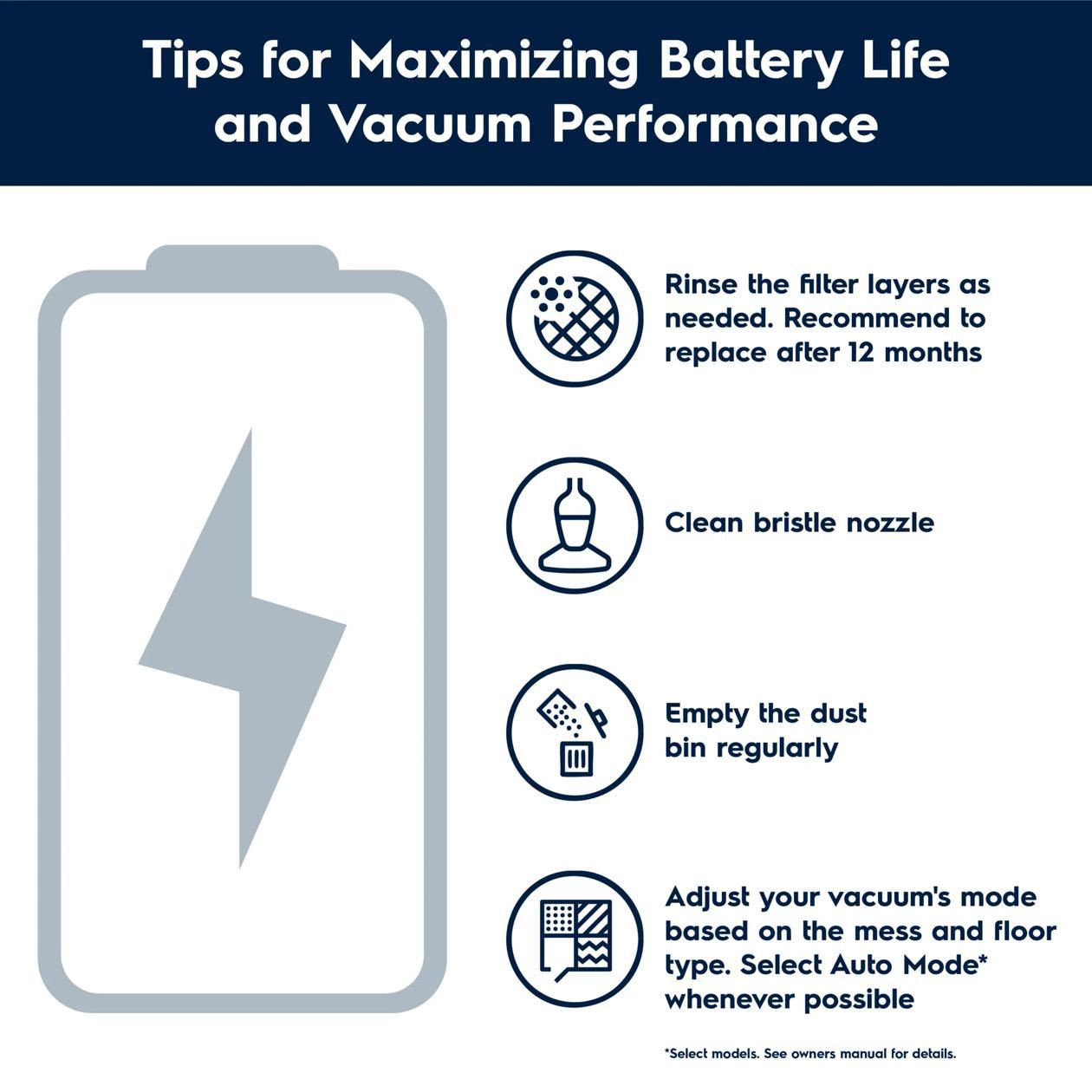 - Always know the power level of your vacuum with LED interface lights that indicate the charging status and battery levels.