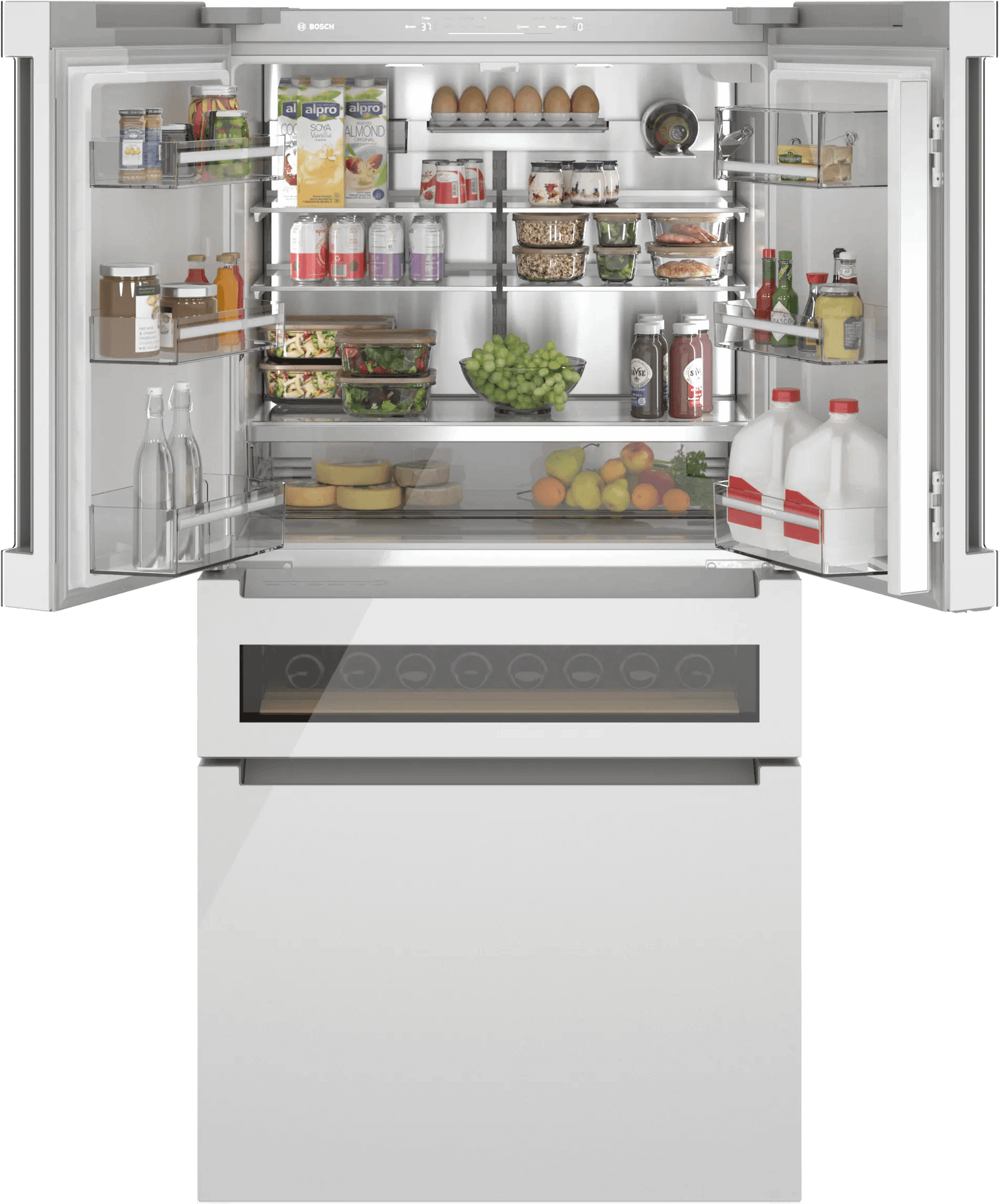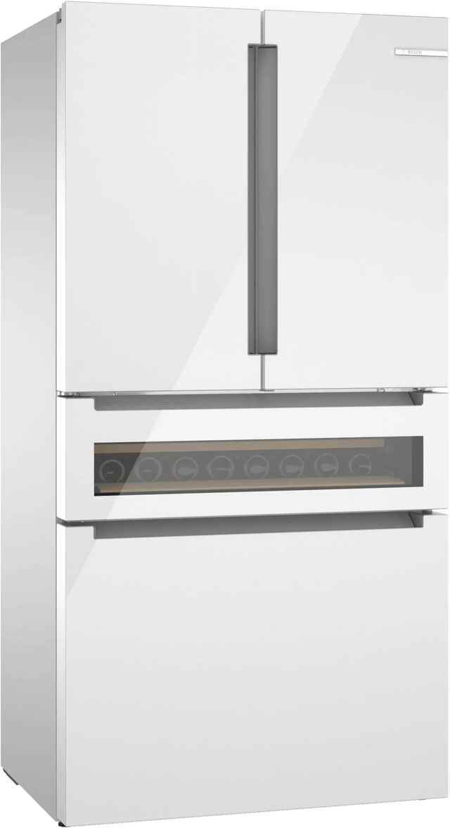 800 Series French Door Bottom Mount Refrigerator, Glass door 36" White, Total No Frost