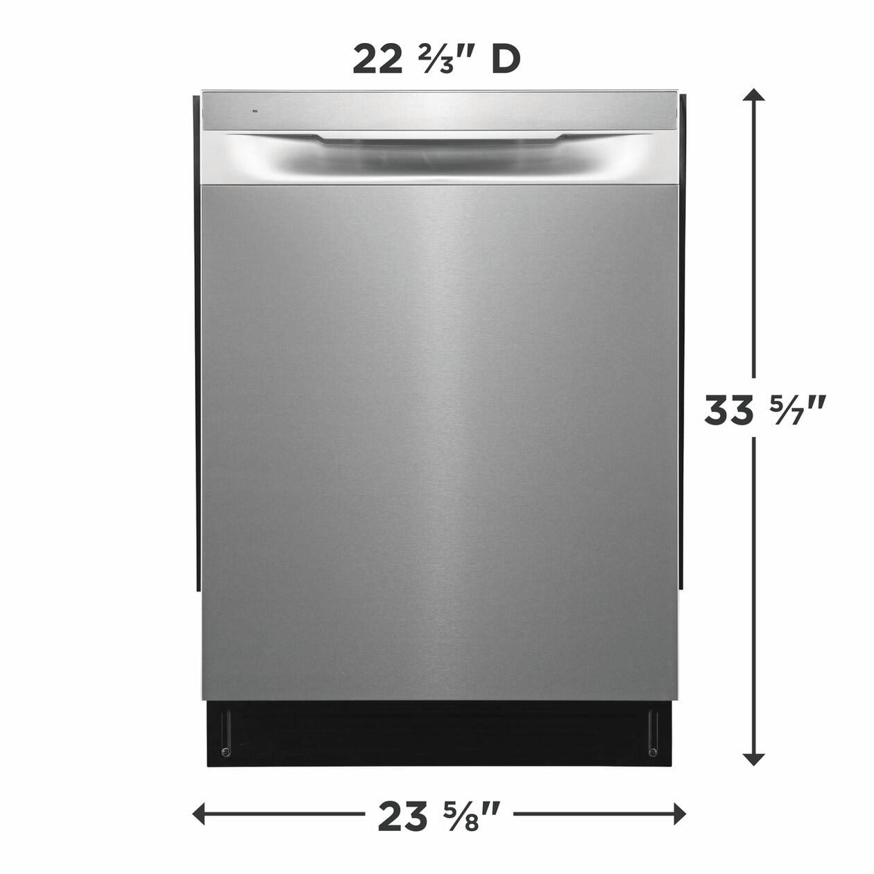 The Frigidaire 24" Built-In Hybrid Tub Dishwasher offers the sleek look and the benefits of a stainless tub with a plastic floor and heater for enhanced drying performance. The Eco Air Dry function props the door open during the drying phase to introduce air for improved drying and DishSense® sensor technology adjusts cleaning performance based on soil levels to eliminate pre-rinse. This quiet dishwasher (49 dBA) also includes 5 wash cycles with a Quick wash for a complete clean in just 60 minutes.