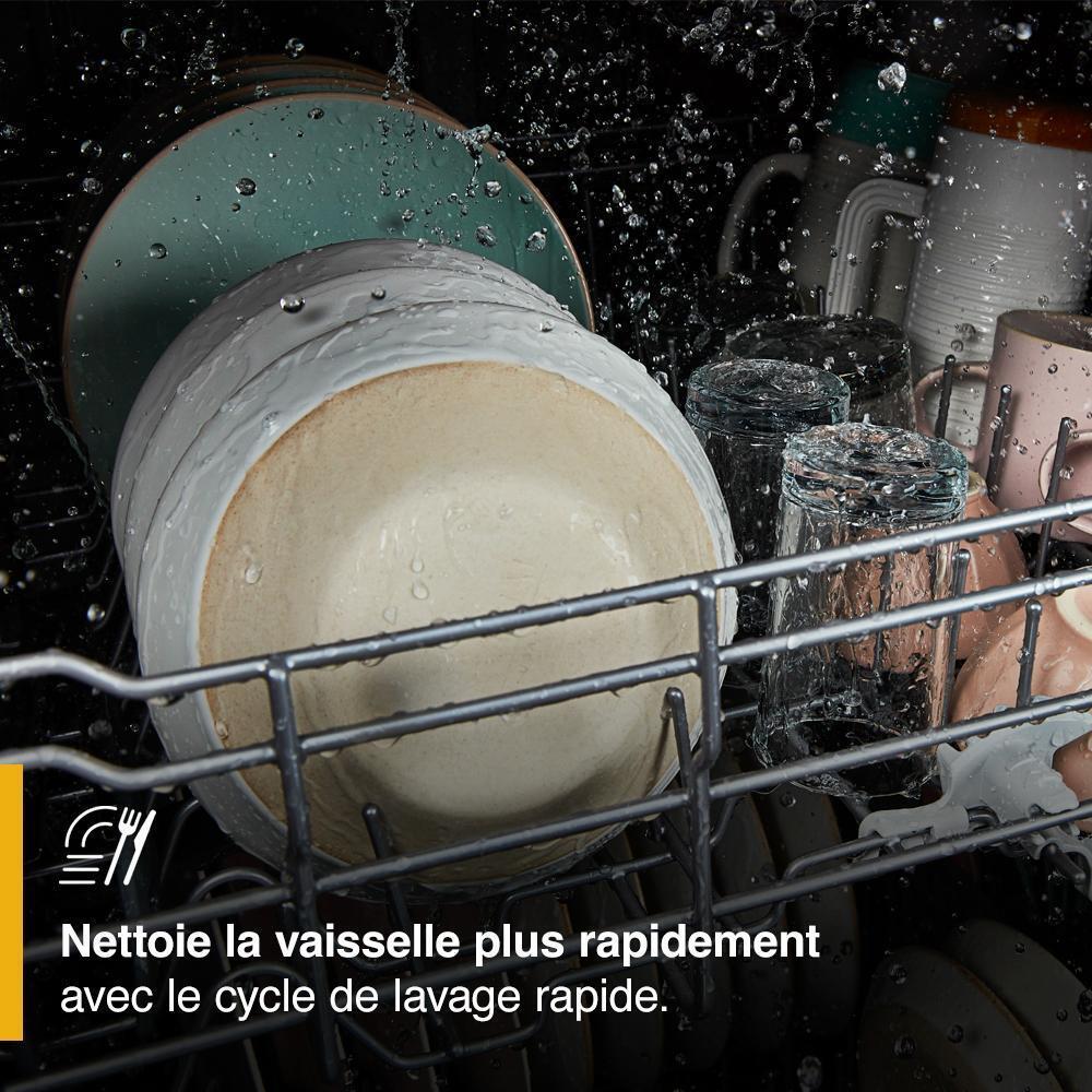 - Clean dishes fast with a cycle that thoroughly takes care of plates, pans and glasses when you need them done in a hurry.