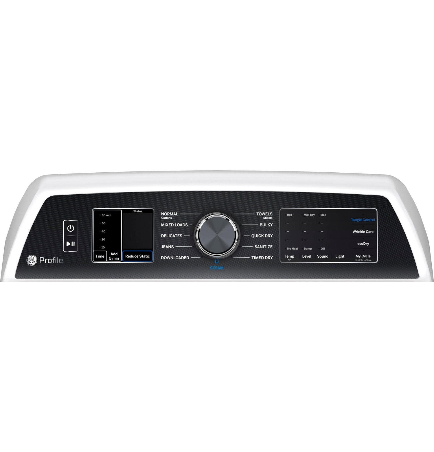 Model PTD70GBSTWSGE Profile™ ENERGY STAR® 7.4 cu. ft. Capacity Smart aluminized alloy drum Gas Dryer with Sanitize Cycle and Sensor Dry