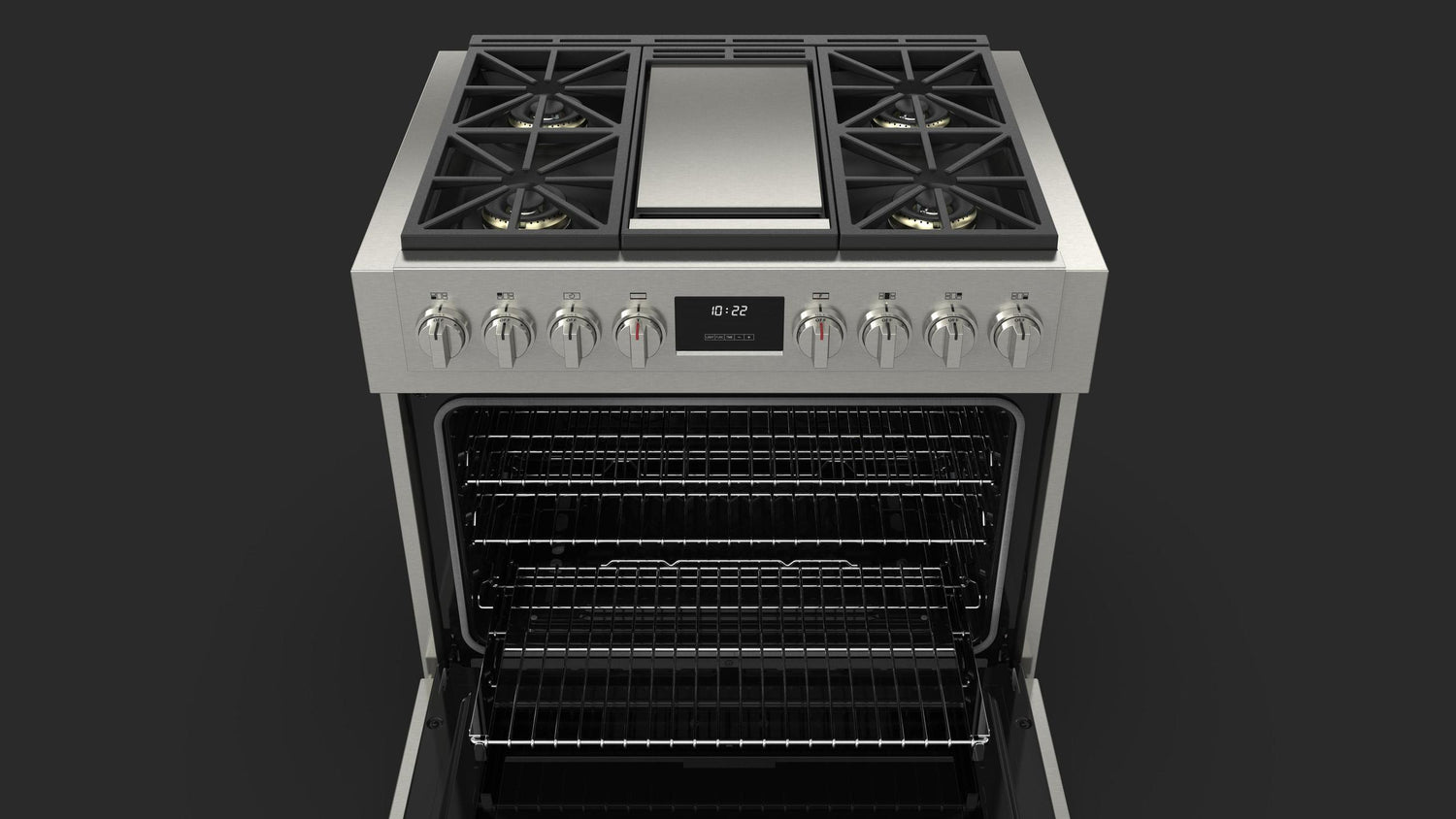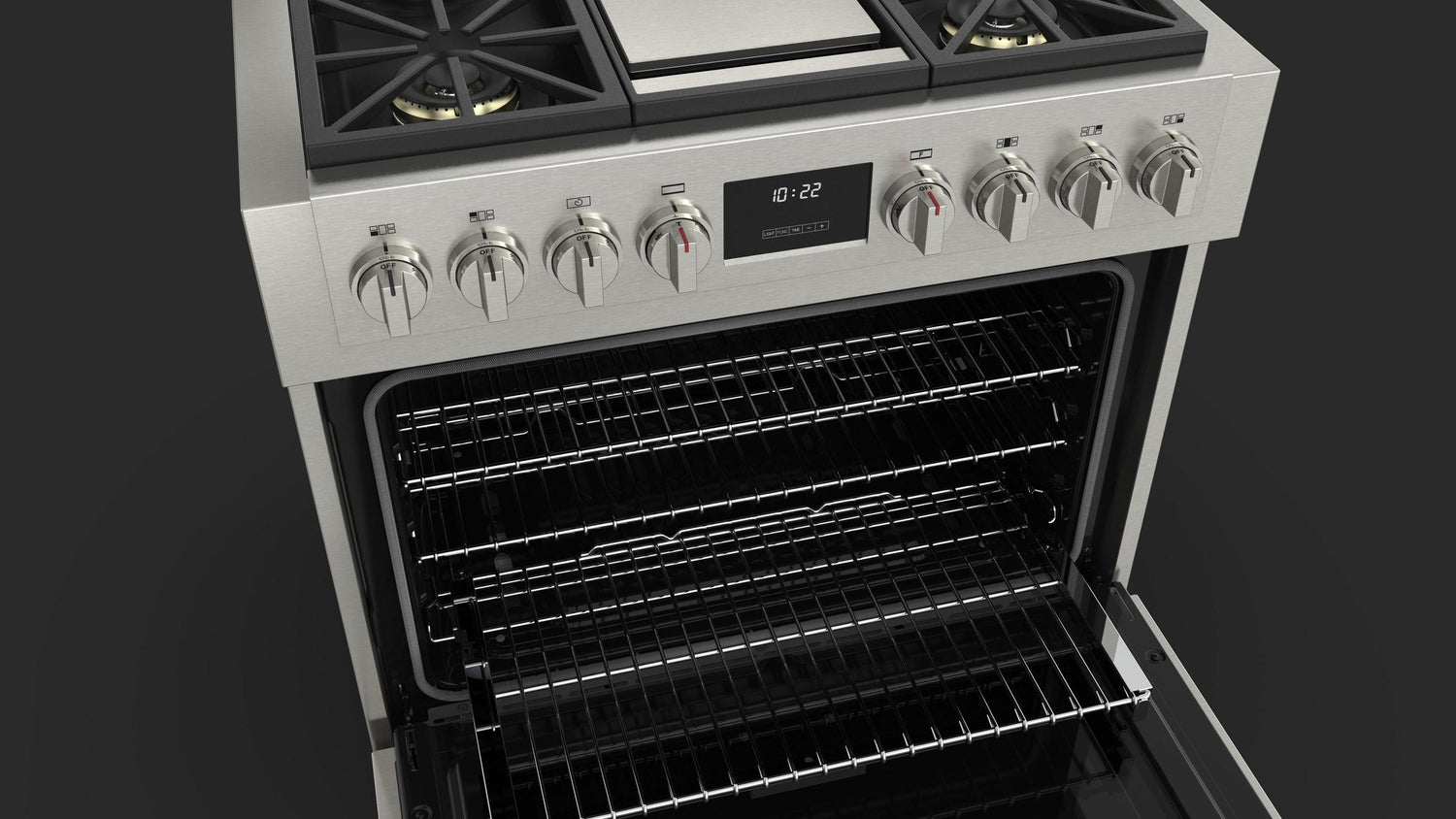 | Intense heat sears meats and fish locking in juices, with large broiling area. Ventilation in our Gas Pro Range allows for closed door broiling, which ensures constant cooking. |