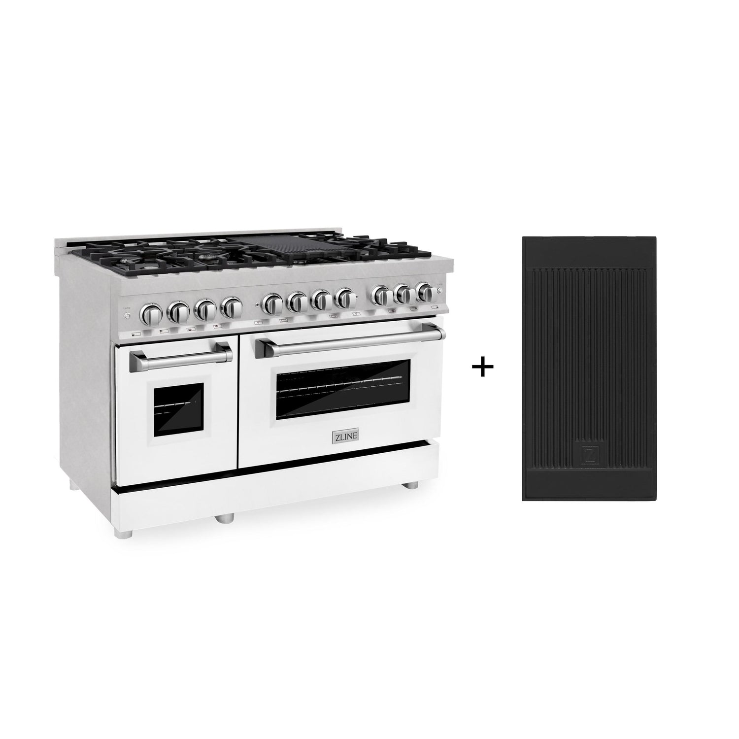 ZLINE 48" 6.0 cu. ft. Electric Oven and Gas Cooktop Dual Fuel Range with Griddle and White Matte Door in Fingerprint Resistant Stainless (RAS-WM-GR-48)