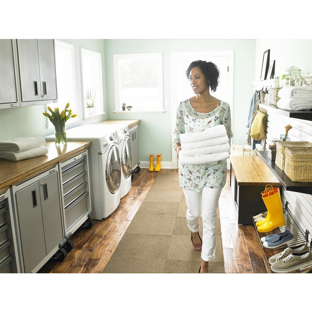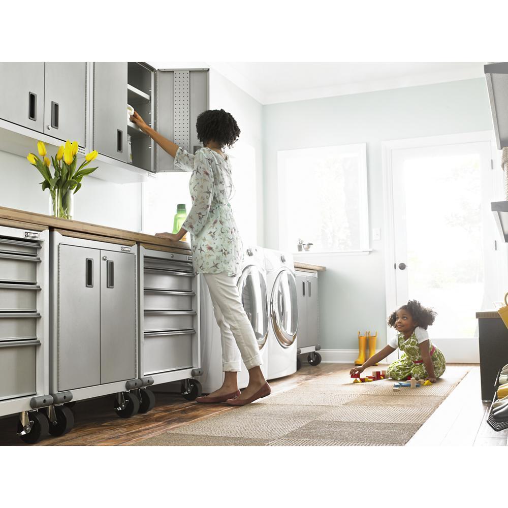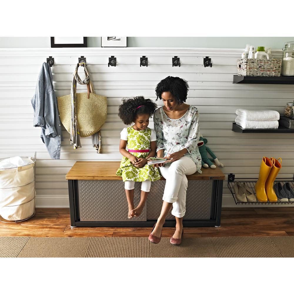 This Gladiator® 30" Shelf keeps a variety of items off the floor but within reach. This heavy-duty steel shelf can hold up to 50 lbs. and is easily relocated onto different Gladiator® Wall Systems. Friction lock tabs keep this shelf secured to the wall.
