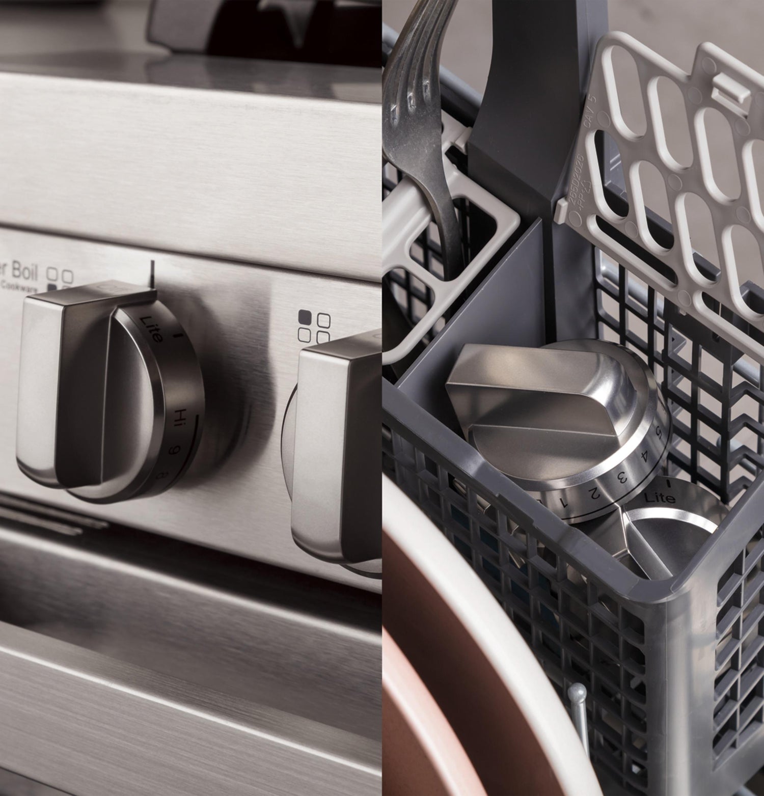 - Creative cooking can get messy. Dishwasher-safe knobs let you have fun in the kitchen, without the worry of a complicated cleanup