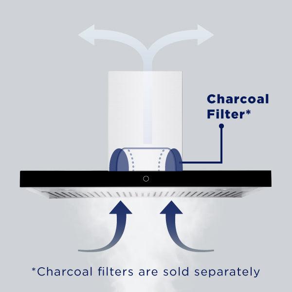 - Convert to ductless wall mount chimney with our functional charcoal filters (sold separately). These filters trap grease particles from fumes and deodorize cooking smells