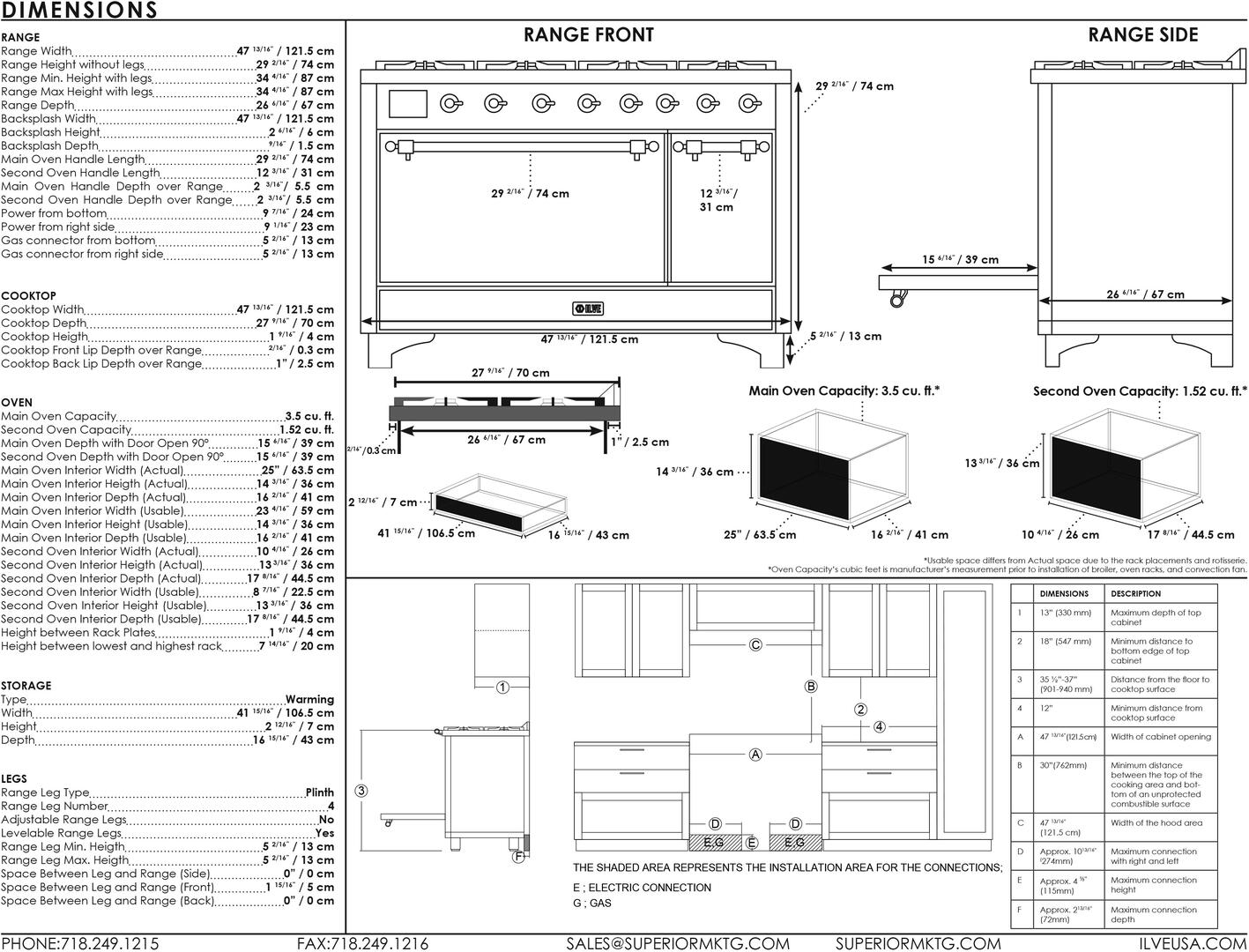 The 48" Majestic freestanding range brings the ultimate cooking experience to your kitchen. The large European Convection oven gives you the power to experiment with your dishes and get even cooking, while the full-width warming drawer gives the option to use residual heat of the oven to keep cooked food warm or warm your dishes before serving.The cooktop features semi-sealed burners with various BTUs to cook whatever you want, however you want.