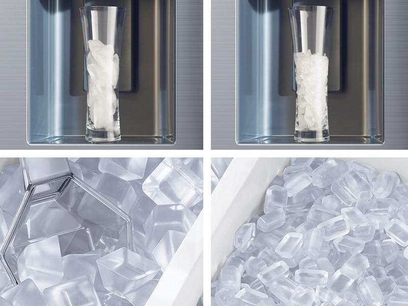 - Enjoy your favorite beverage with up to Four Types of Ice. Use the external dispenser for curved or crushed ice, and enjoy Two additional ice makers in the freezer producing cubed ice and Samsung's Ice bites™ to help chill your drink faster.