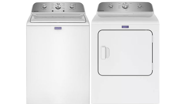Power through laundry with this bundle featuring the Maytag 4.2 Cu. Ft. Capacity Top Load Washer and the Top Load Electric Wrinkle Prevent Dryer - 7.0 cu. ft. The washer delivers stain-fighting power with a Deep Fill Option and Power™ agitator, while the dryer's Wrinkle Prevent phase keeps clothes looking fresh. With a 10-Year Limited Parts Warranty on the washer's Drive Motor and Stainless Steel Wash Basket, this bundle offers durability and convenience for tackling tough loads of laundry.